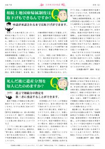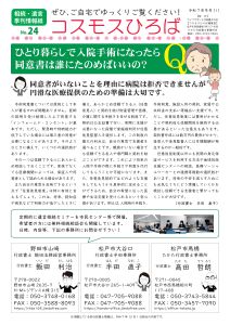 「ライフサポート行政書士の会」が発行する「コスモスひろば」令和7年冬号が完成しました。1)ひとり暮らしの入院手術同意書ついて、2)相続土地国庫帰属制度の取下げについて、3)死後に遺産分割を知人へ依頼できるかについて、以上3つの内容をご紹介しています。ぜひ、ご覧ください。